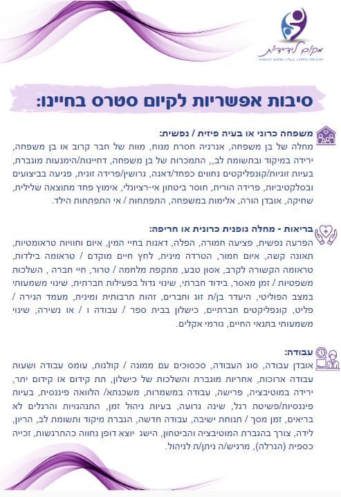 להלן הסיבות האפשריות לקיום סטרס בחיינו?
